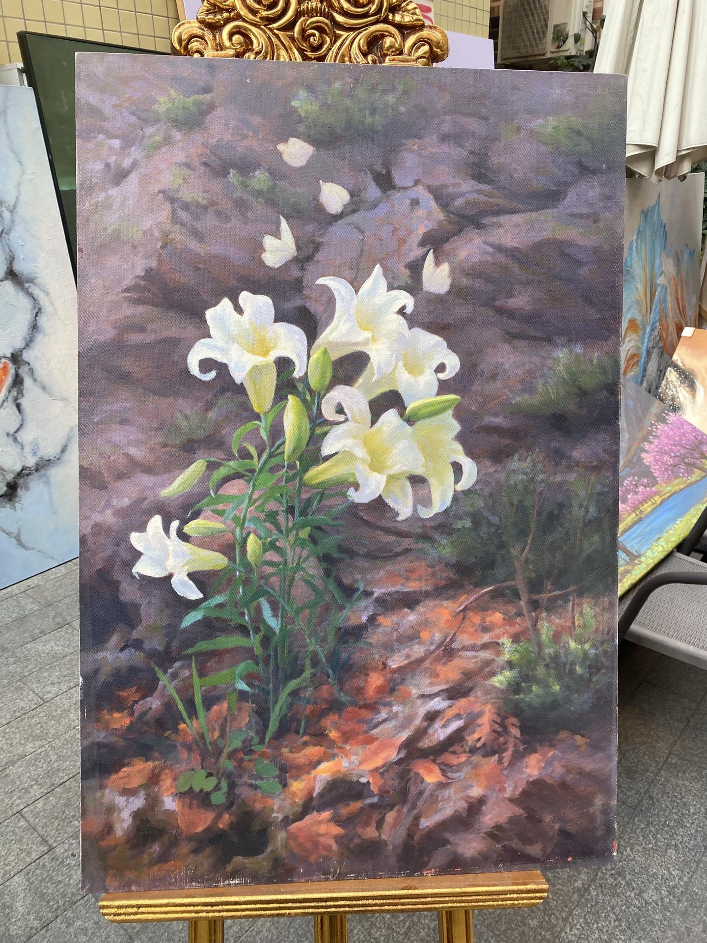 Emily Carter's artistic focus remains unwavering: botanical subjects celebrating nature's everyday magnificence. While her sunflower paintings have brought her widespread acclaim, she also explores roses, peonies, and wildflowers. Each subject receives meticulous attention to color, light, and organic form. Emily particularly favors the interplay between delicate petals and dramatic backgrounds—silk fabrics in jewel tones, vintage wallpapers, weathered wood surfaces. Her sunflower paintings often feature the flowers against flowing fabrics: Spanish lace mantillas, Oriental brocades, contemporary linens in ochre and terracotta.